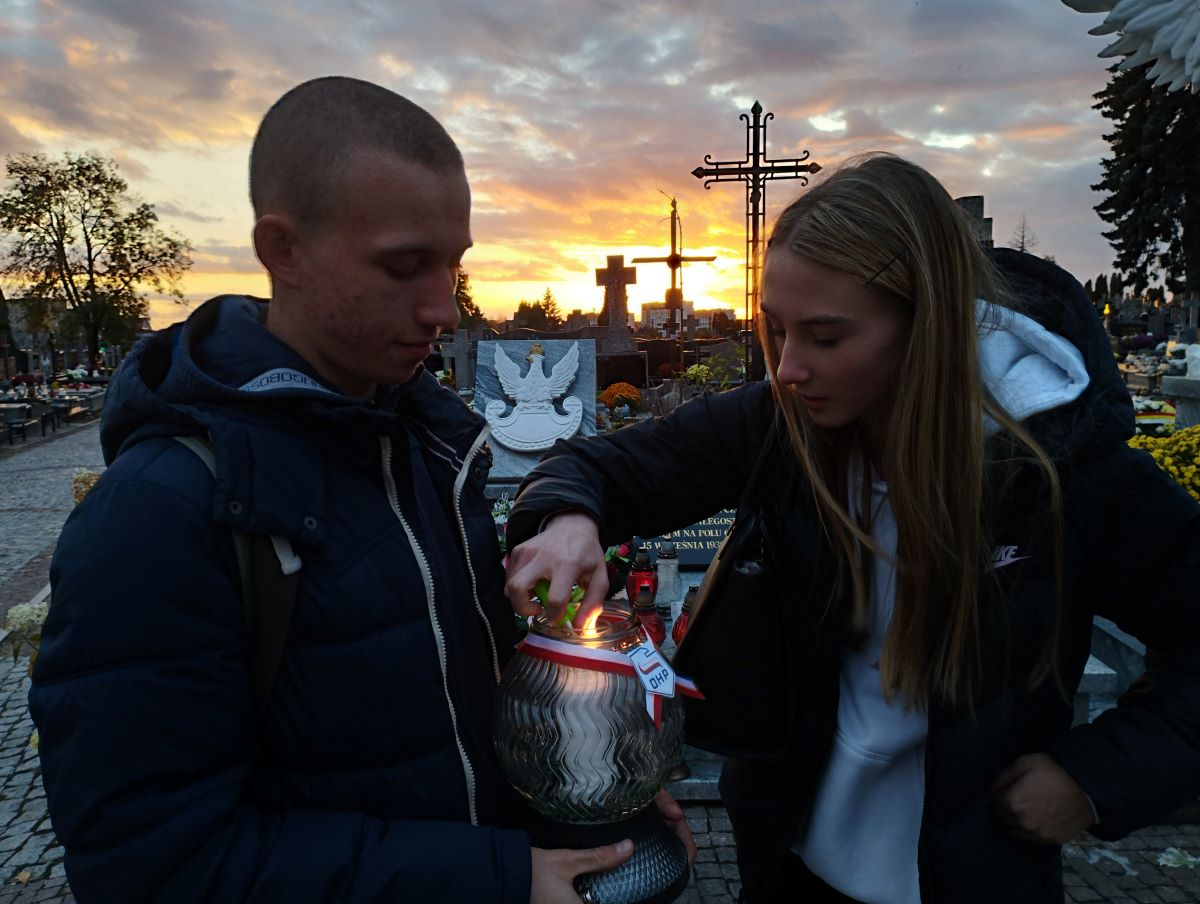 Młodzież łącząc się z akcją „Światło pamięci Niezwyciężonym”, zapaliła znicze składając hołd żołnierzom - obrońcom Ojczyzny, następnie w chwili refleksji i zadumy, zintegrowała się we wspólnej modlitwie wstawienniczej się za tych którzy polegli w walkach o wolność Polski.
