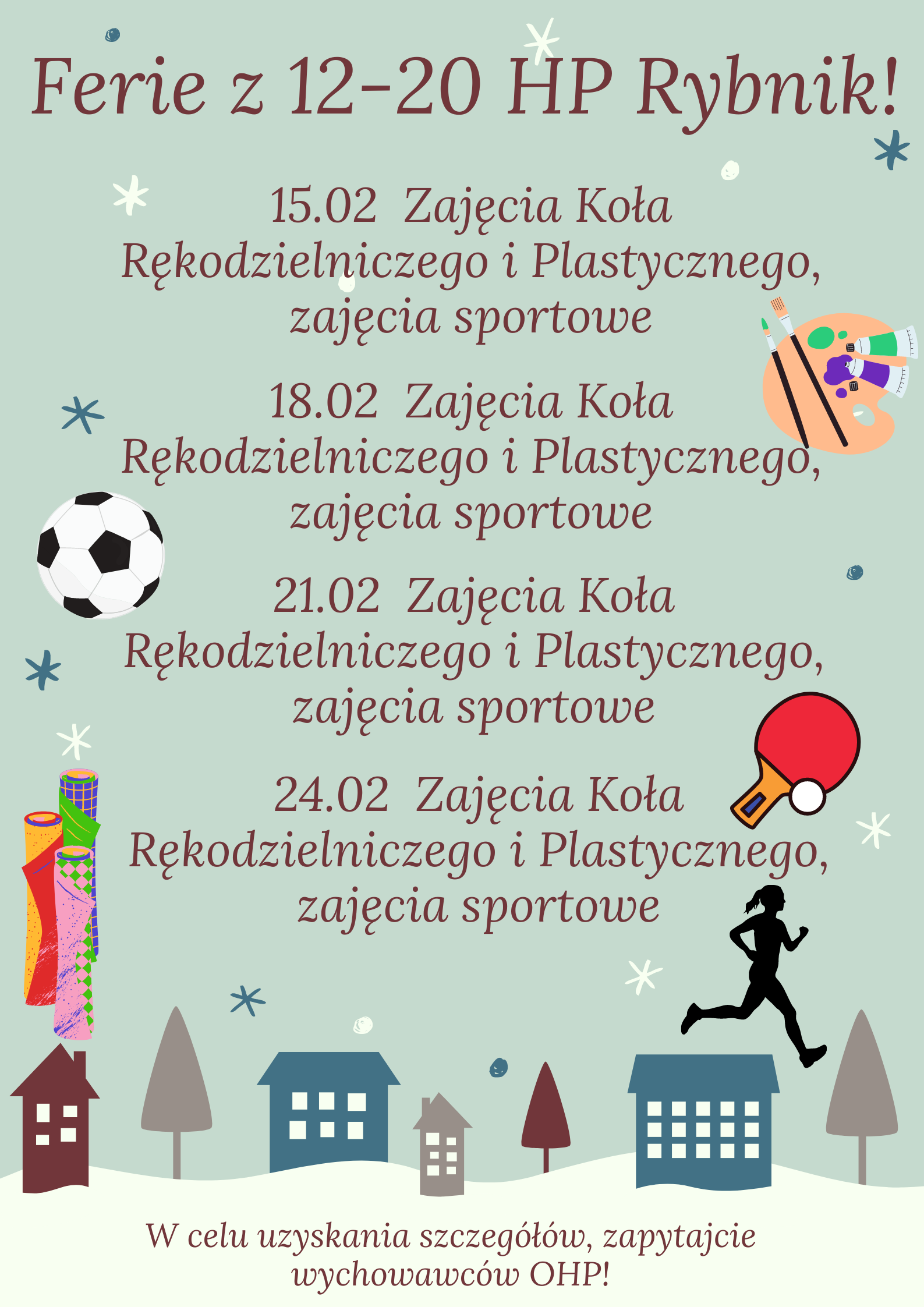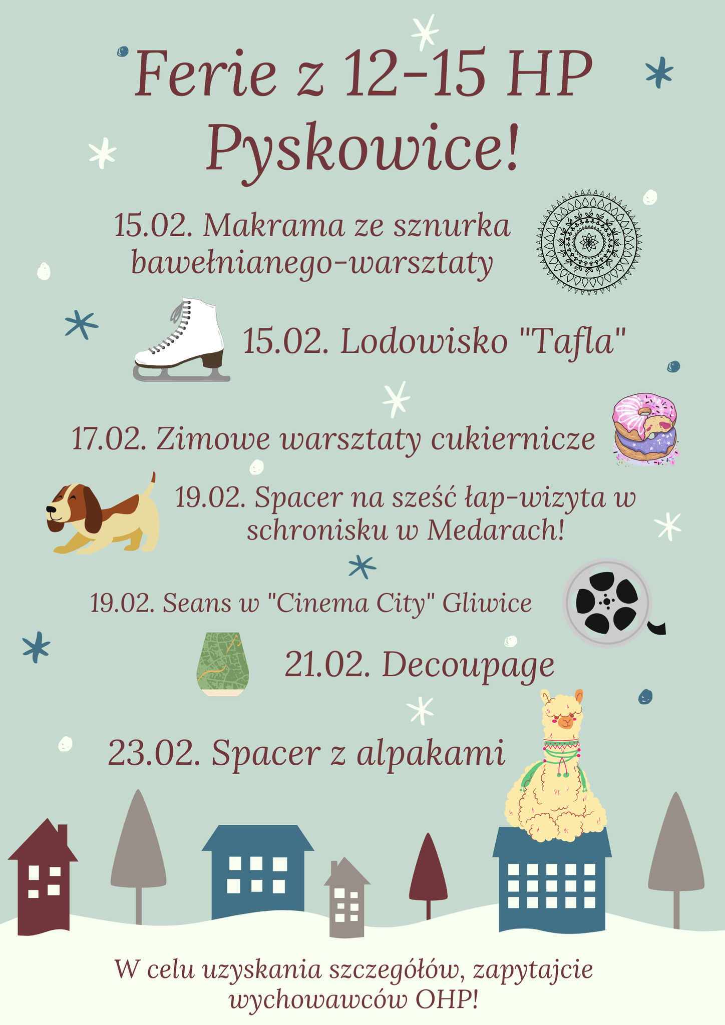 Śląska Wojewódzka Komenda OHP zaprasza do korzystania z oferty na ferie zimowe.