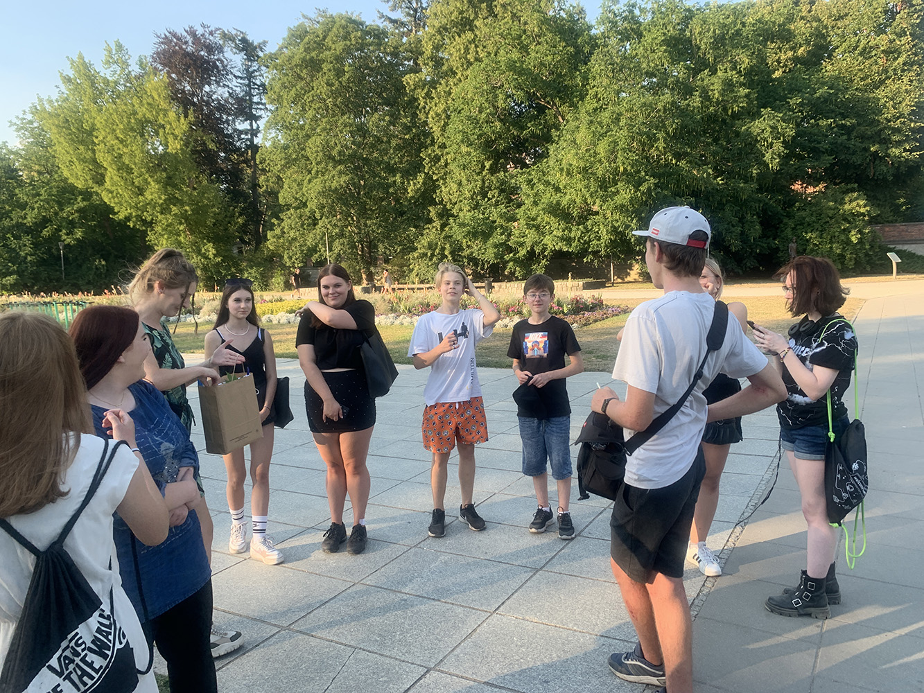 Przybyli na Jasne Błonia, gdzie rozpoczęli spotkanie od lodów. Po poczęstunku przeszli do głównej atrakcji. Młodzież losowała zadania, a osoba, która najlepiej je wykonała otrzymywała nagrodę. Kilka z nich wymagało pracy grupowej, np. zrobienie wspólnego zdjęcia ze śmiesznymi minami, wspólny taniec w kółku. Aktywności były wykonywane podczas spaceru po parku, gdzie co wskazany odstęp czasu był moment na wybór kolejnego ćwiczenia. Ich wykonywanie nie tylko rozwijało kondycję fizyczną uczestników, ale też kształtowało kreatywne myślenie i nieszablonowe podejście.