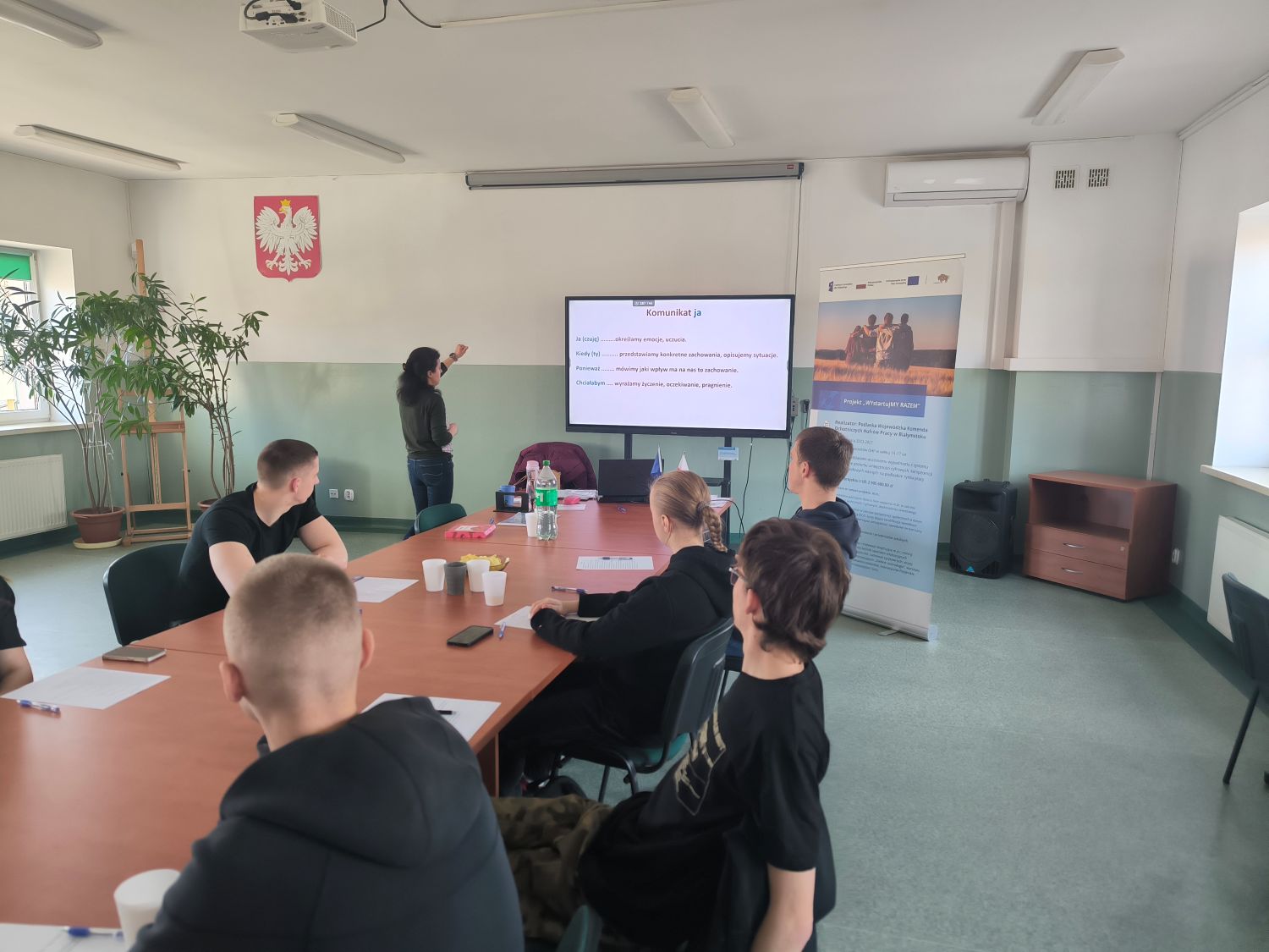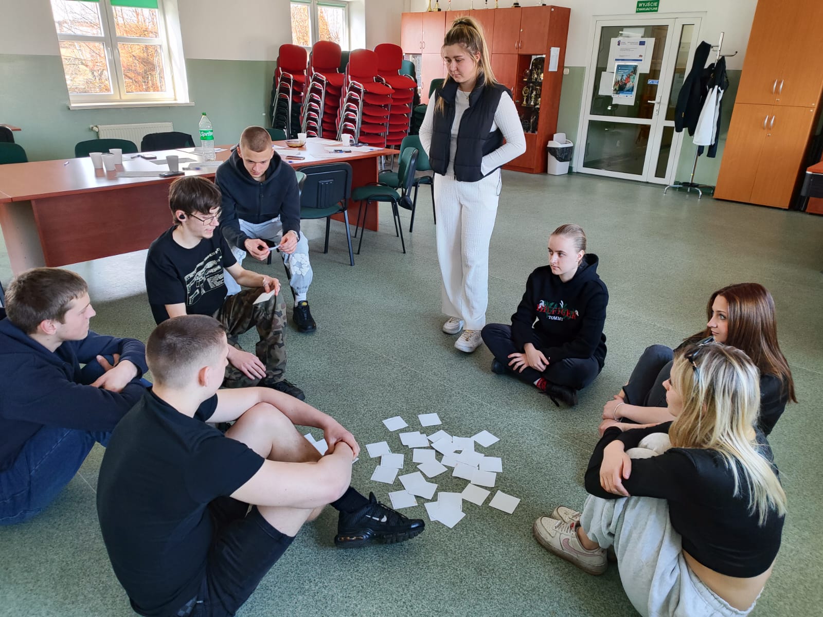 Zajęcia miały charakter praktyczny i interaktywny. Dzięki różnym ćwiczeniom i zadaniom grupowym młodzież mogła przećwiczyć współpracę, budowanie relacji oraz udzielanie i przyjmowanie informacji zwrotnej. Takie doświadczenia pozwoliły uczestnikom lepiej zrozumieć, jak istotne są otwartość na innych, umiejętność słuchania oraz wspólne rozwiązywanie problemów.