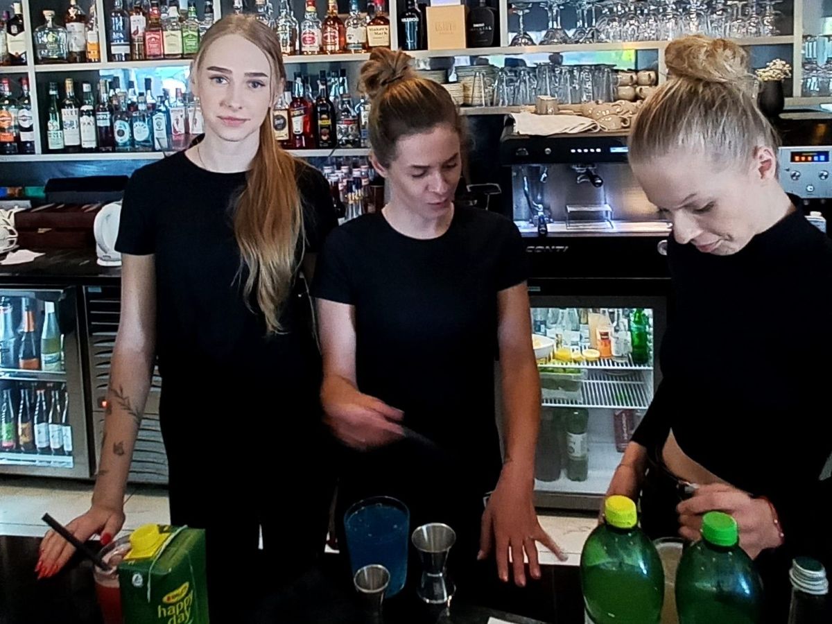 W kursie: Kelner, barman, barista, sommelier z obsługą kasy fiskalnej uczestniczy pięcioro młodych osób, które uczą się m.in. profesjonalnej obsługi i konserwacji sprzętu, serwowania i wydawania potraw i napojów, technik parzenia kawy, zasad łączenia i doboru win a także odpowiedniej komunikacji z konsumentami.