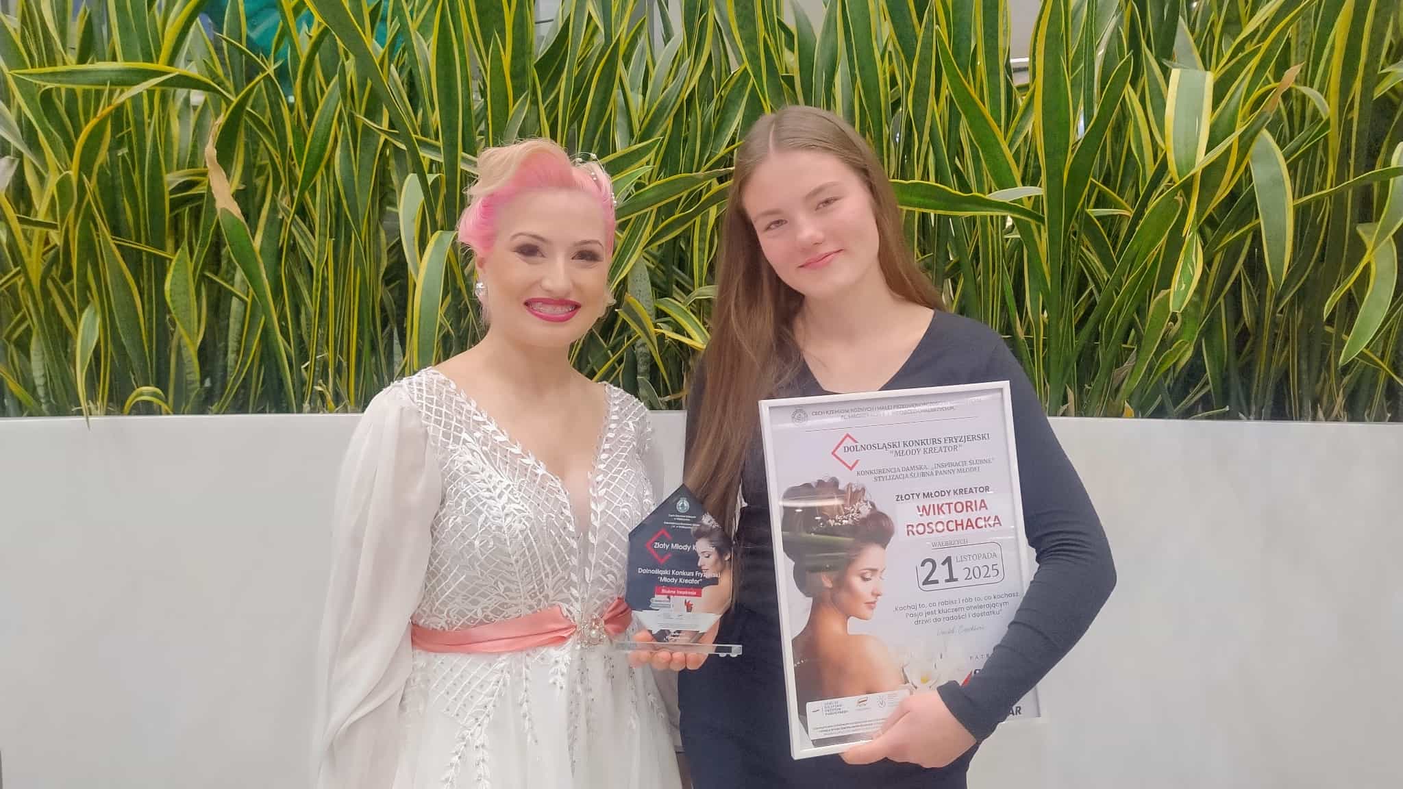 Wśród uczestników znalazły się również Ania i Wiktoria dwie przedstawicielki Hufca Pracy w Legnicy, które z pasją i profesjonalizmem zmierzyły się z tegorocznym tematem konkursu: „Inspiracje ślubne”. Zadanie nie należało do łatwych – w ciągu 90 minut należało wykonać pełną stylizację ślubną na modelce, obejmującą misternie upiętą fryzurę, makijaż i pasującą do wizerunku stylizację. Obie legnickie uczestniczki zaprezentowały fryzury, które zachwyciły pomysłowością i estetyką. Największy sukces odniosła Wiktoria, która zdobyła pierwsze miejsce, pokonując silną konkurencję. Jury, w skład którego wchodzili instruktorzy zawodu, styliści i doświadczeni fryzjerzy, doceniło jej pracę za oryginalną koncepcję, różnorodność technik oraz dopracowany, artystyczny efekt końcowy . Konkurs „Młody Kreator” to nie tylko rywalizacja, ale przede wszystkim okazja do rozwoju i wymiany doświadczeń. Daje młodym ludziom możliwość zaprezentowania swoich talentów oraz zdobycia cennej praktyki w warunkach profesjonalnej oceny. Jesteśmy dumne z naszych uczestniczek, które imponująco zaprezentowały swoje mistrzowskie umiejętności fryzjerskie. Fakt że Wiktoria została wyróżniona w tak ważnym konkursie branżowym – to dowód, że w naszej społeczności talent łączy się z pasją i profesjonalizmem.