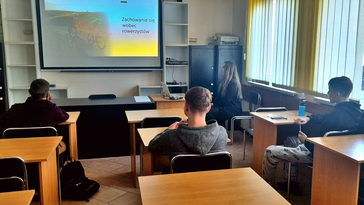 Młodzież podczas zajęć zapoznała się z przepisami kodeksu ruchu drogowego, warunkami używania pojazdów, obowiązkami kierowcy oraz zasadami udzielania pierwszej pomocy, która jest bardzo ważna przy szybkim reagowaniu podczas wypadków drogowych. Podopieczni Hufca Pracy w Łomży chętnie zadawali pytania oraz ze skupieniem słuchali praktycznych wskazówek.