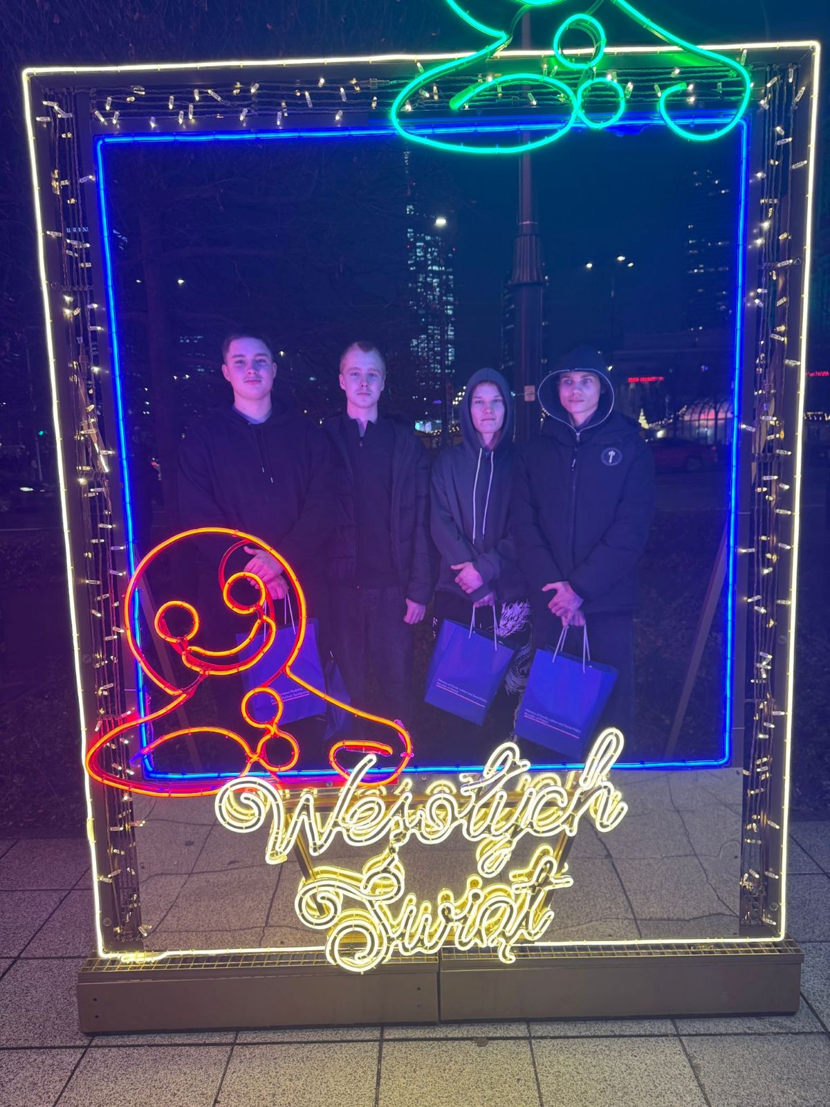 Na koniec odwiedziliśmy jarmark świąteczny, który zachwycił nas swoim klimatem. Kolorowe iluminacje, pachnące przysmaki i mnóstwo ciekawych stoisk sprawiły, że każdy znalazł coś dla siebie. Do Ziębic wróciliśmy zmęczeni, ale szczęśliwi. Ten wyjazd był świetną okazją do poznania ważnych miejsc, wspólnego spędzenia czasu i zdobycia nowych doświadczeń. To dzień, który z pewnością zostanie w naszej pamięci na długo.