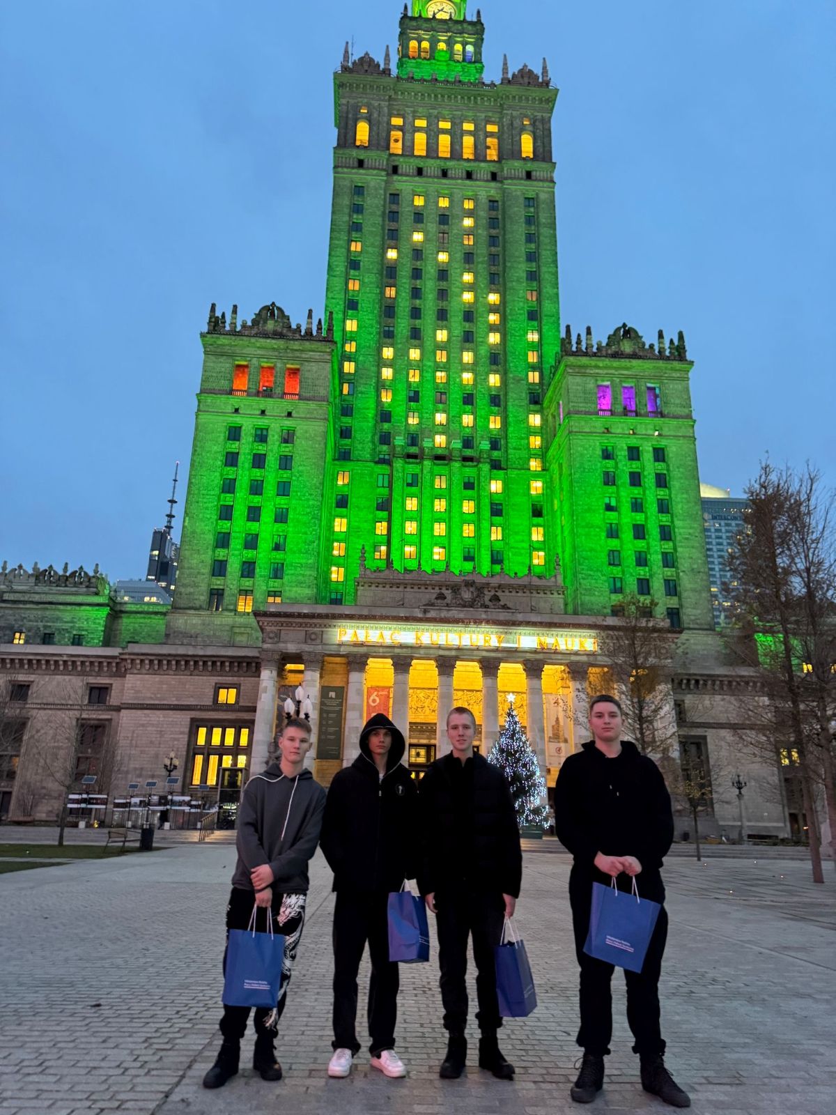 Po części oficjalnej przyszedł czas, by zobaczyć Warszawę z innej perspektywy. Odwiedziliśmy Pałac Prezydencki, gdzie zatrzymaliśmy się na chwilę przed budynkiem, poznając jego znaczenie i symbolikę. Później przeszliśmy pod Grób Nieznanego Żołnierza – miejsce pełne powagi i historii. Na chwilę zatrzymaliśmy się w ciszy, oddając hołd tym, którzy walczyli za wolność kraju. Kolejnym punktem było wejście na 30. piętro Pałacu Kultury i Nauki. Panorama Warszawy zimą wyglądała niesamowicie — ogromne miasto pod nami, błyszczące światełka i lekki mroźny klimat tworzyły niezapomniany widok. Oczywiście nie mogło zabraknąć serii zdjęć.