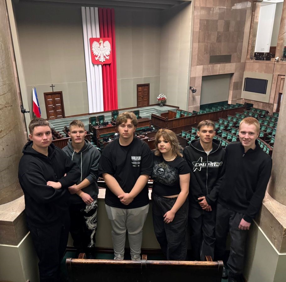 Pierwszym miejscem, do którego trafiliśmy, był Sejm Rzeczypospolitej Polskiej. Możliwość wejścia do tak ważnego obiektu państwowego zrobiła na nas duże wrażenie — zobaczyliśmy miejsca, o których słyszy się każdego dnia w mediach, i poczuliśmy atmosferę pracy, jaka tam na co dzień panuje.