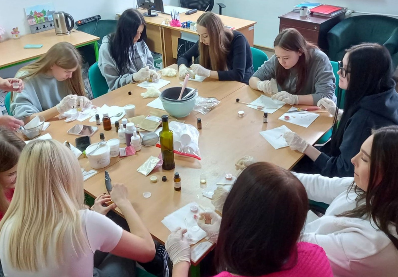 Podczas zajęć młodzież samodzielnie przygotowywała błyszczyki do ust, perfumy w wosku oraz peelingi do ciała, jednocześnie zgłębiając tajniki pracy z prostymi, ekologicznymi składnikami i technikami.
