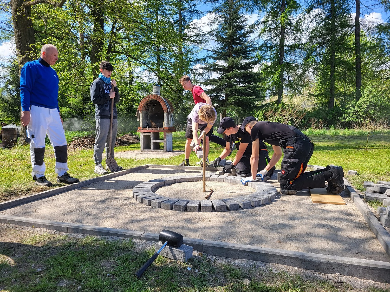 Zadaniem uczestników projektu było m.in. zaprojektowanie i zagospodarowanie terenu zieleni wokół ogniska, wykonanie paleniska w ognisku oraz nasadzenie roślin zielonych.