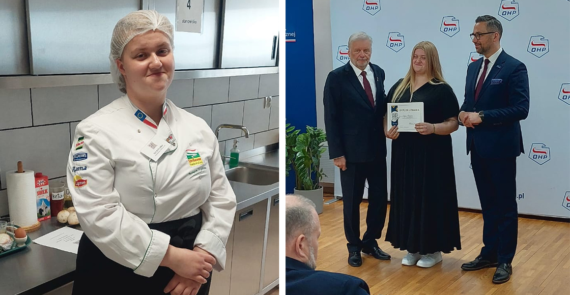 No nie. Ale ja gotuję od dwunastego roku życia i kocham to robić. I kiedy już sobie wszystko poukładałam, dotarło do mnie, jaką jestem szczęściarą, że w OSiW trafiłam na panią Renię, mojego instruktora praktycznej nauki zawodu, która z anielską cierpliwością przekazywała mi swoją wiedzę i dzieliła się doświadczeniem. Te sukcesy, wyróżnienia, nagrody, udział w ogólnopolskim konkursie ”Sprawny w zawodzie” to właściwie dzięki niej. Wspierała, mobilizowała i zawsze mogłam na nią liczyć.