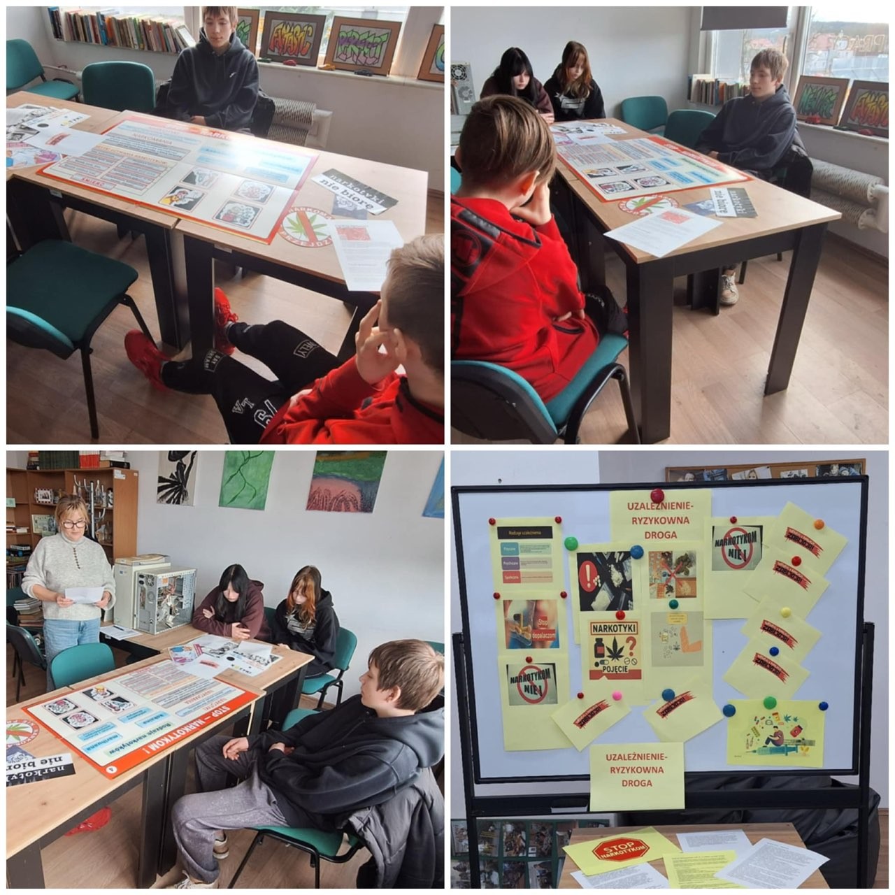 Uzależnienie to problem, który może dotknąć każdego, polega na utracie kontroli nad danym zachowaniem lub substancją. Szczególnie narażona jest młodzież. Presja rówieśnicza, stres i ciekawość mogą sprzyjać ryzykownym decyzjom. Dlatego ważna jest rozmowa, wiedza i umiejętność szukania pomocy. Celem zajęć było dostarczanie podstawowych wiadomości o narkotykach oraz ich oddziaływaniu na organizm ludzki, propagowanie zdrowego stylu życia - bez nałogów uzależnień.