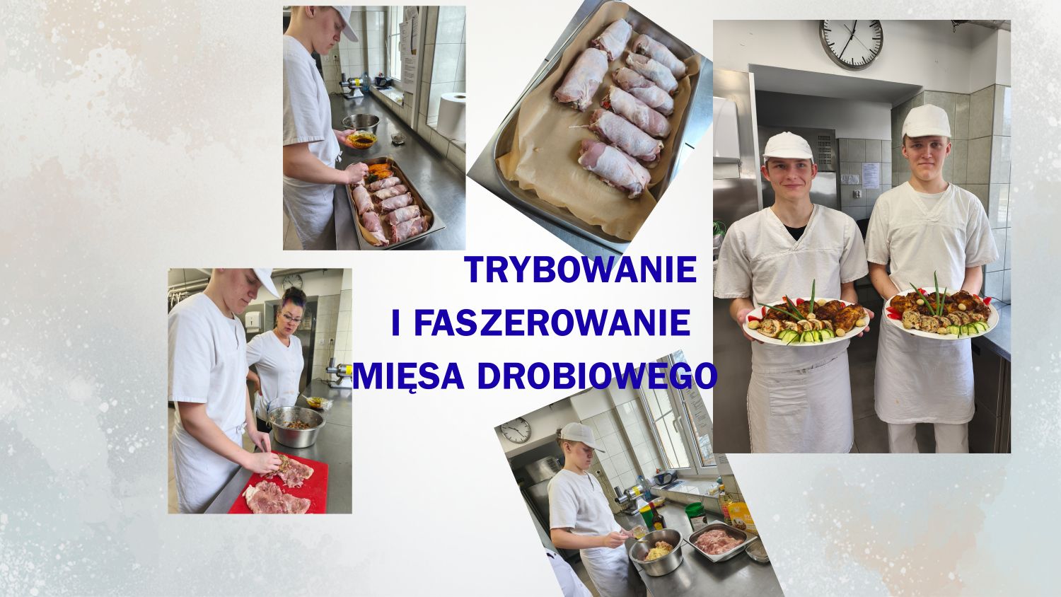 Uczestnicy uczyli się prawidłowego posługiwania nożem, technik cięcia oraz zasad bezpieczeństwa i higieny pracy. Instruktor zwracał szczególną uwagę na precyzję ruchów, minimalizowanie strat surowca oraz odpowiednie przygotowanie stanowiska pracy. Druga część warsztatów poświęcona była faszerowaniu mięsa drobiowego. Młodzi kucharze przygotowali farsz – z wykorzystaniem warzyw, ziół oraz produktów zbożowych. Następnie ćwiczyli techniki nadziewania oraz formowania mięsa w taki sposób, aby potrawa zachowała atrakcyjny wygląd i odpowiednią strukturę podczas obróbki termicznej.