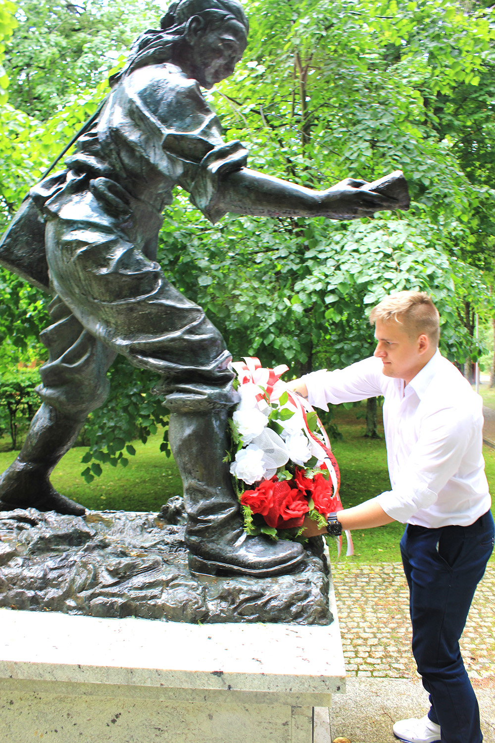 Podsumowaniem niezwykle emocjonalnej i bogatej lekcji historii było złożenie wieńca i zapalenie znicza pod pomnikiem „Inki”.