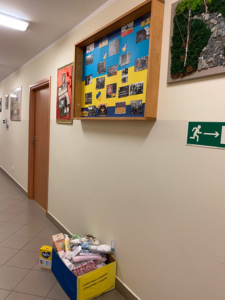 Kadra hufca oraz uczestnicy wyrazili również swoją solidarność z cierpiącą Ukrainą i nieśli pomoc materialną, rzeczową oraz fizyczną. W hufcu uczestnicy przygotowali gazetkę tematyczną Hufiec Pracy w Zambrowie - Solidarni z Ukrainą oraz pojemnik, w którym składowano przyniesione produkty.