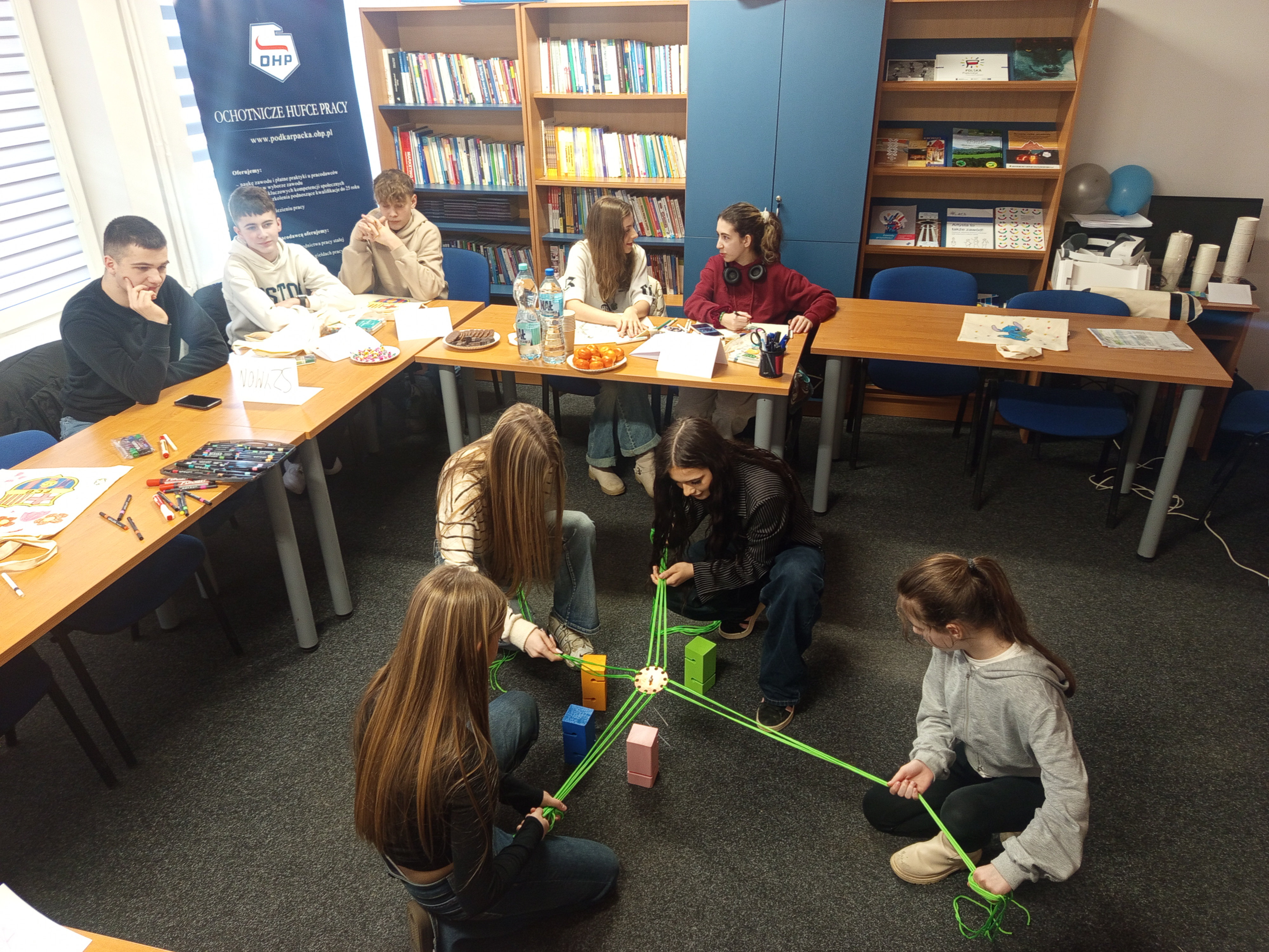 Zajęcia miały charakter praktyczny i angażujący. Młodzież poznawała różne profesje oraz własne predyspozycje m.in. dzięki nowoczesnym technologiom, takim jak okulary VR, które pozwoliły „wejść” do realistycznych środowisk pracy i przymierzyć wybrane zawody. Równie chętnie uczestnicy sprawdzali się przy kole fortuny, grach edukacyjnych i zadaniach kreatywnych oraz integracyjnych, które pozwalały zdobywać wiedzę poprzez praktykę i dobrą zabawę.