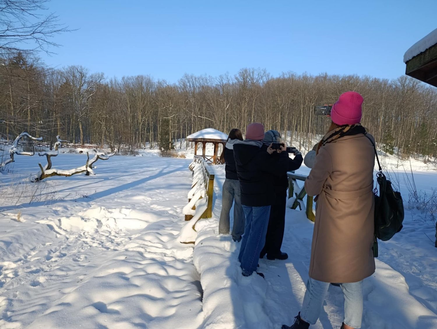 Ferie to jednak nie tylko nauka i warsztaty, ale także aktywny wypoczynek. Uczestnicy wybrali się na lodowisko MOSiR oraz na spacer do Lasu Miejskiego. Podczas wyjścia do lasu obserwowali zimową przyrodę, dokarmiali zwierzęta w paśniku oraz wykonywali zdjęcia. Prawdziwą frajdą okazało się fotografowanie, ponieważ zimowy krajobraz był wyjątkowo piękny i sprzyjał twórczym ujęciom.
