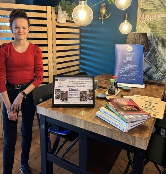 Tak, może nie jestem wybitną kucharką, ale lubię gotować. Pomysł i przeprowadzenie projektu „4Smaki” to była niesamowita przygoda. Doświadczenie, które nabyłam będąc liderem grupy inicjatywnej, bardzo dobrze wpłynęło na moje umiejętności organizacyjne, logistyczne i wiele innych oraz sprawiło, że czuję się usatysfakcjonowana i zadowolona z wykonanej przez siebie pracy. Udział w projekcie, to była taka podróż po kuchni japońskiej, indyjskiej, włoskiej i amerykańskiej. Niestety nie mogłam wziąć udziału w finale zajęć kuchni włoskiej, ponieważ w tym czasie byłam, co jest naprawdę ciekawym zbiegiem okoliczności, w Rimini we Włoszech, na stażu zawodowym w sklepie jubilerskim, w ramach EFS Erasmus+, organizowanym przez szkołę do której uczęszczam. Więc kuchnię włoską miałam dokładnie przepracowaną. Był to mój trzeci wyjazd, a już złożyłam aplikację na staż w przyszłym roku. Mam nadzieję, że się dostanę.