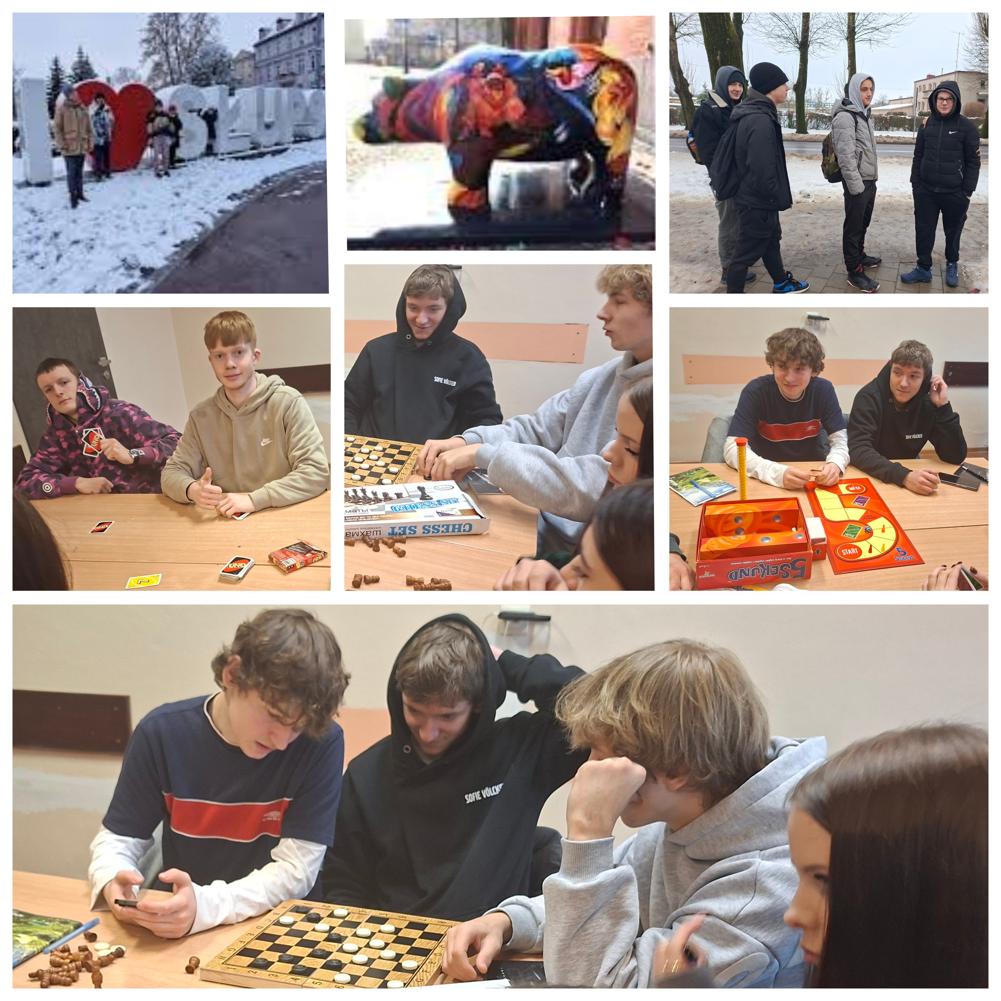 Podczas wspólnego spędzania czasu wolnego podczas ferii, młodzież brała udział m.in. w zajęciach sportowych na lodowiskach, wyjściach rekreacyjnych, grach terenowych, zajęciach na ściance wspinaczkowej oraz zimowych spacerach. Takie działania sprzyjały w promowaniu zdrowego stylu życia, a także w budowaniu relacji rówieśniczych. Nie zabrakło również zajęć integracyjnych, gier planszowych oraz wspólnych wyjść do kina.