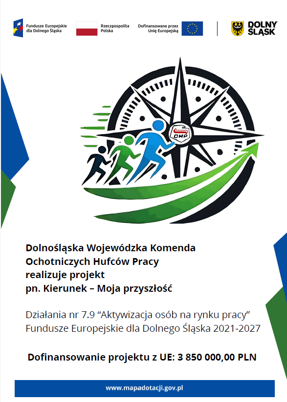 Projekt „Kierunek – Moja przyszłość” to inicjatywa, która ma na celu wsparcie młodych ludzi w aktywizacji zawodowej i pomocy w świadomym planowaniu ich przyszłości zawodowej. Projekt realizowany jest z Funduszy Europejskich dla Dolnego Śląska 2021-2027.