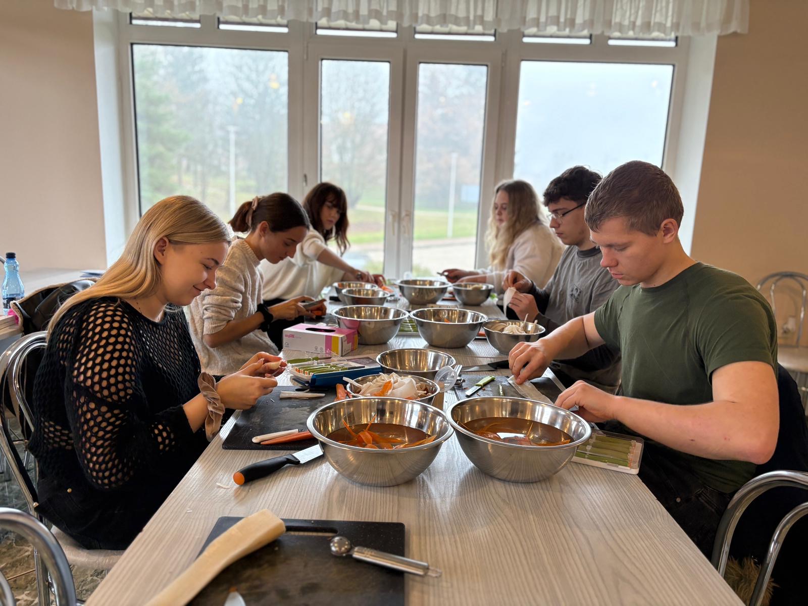 Carving – sztuka wymagająca precyzji, cierpliwości i dużej wyobraźni – przyciągnął uwagę młodych osób z OHP w Gołdapi. Pod okiem instruktorów ze Studio Zmokła Kura uczestnicy poznawali techniki tworzenia efektownych dekoracji, które coraz częściej znajdują zastosowanie w gastronomii, branży eventowej czy usługach dekoratorskich. Podczas zajęć powstawały zarówno misternie wykonane kwiaty z warzyw, jak i spektakularne kompozycje z arbuzów czy melona.